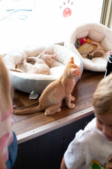 We allow children to visit as long as they are with an adult in the cat lounge. We ask that guardians stay with their children while interacting with the cats.